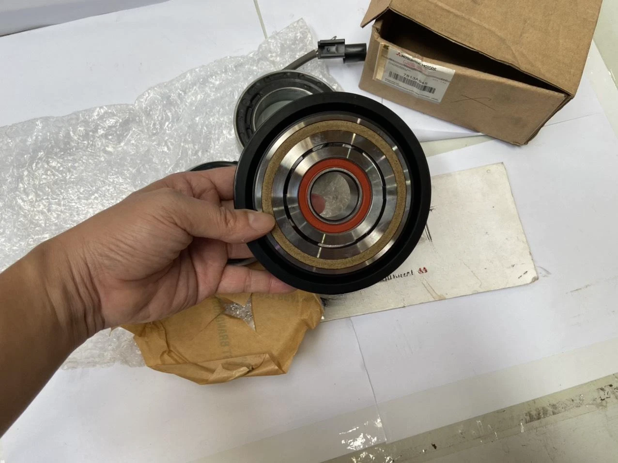 Puly đầu lốc điều hòa là thành phần quan trọng trong hệ thống điều hòa không khí của xe Mitsubishi Xpander. Nó kết nối và ngắt kết nối động cơ với máy nén điều hòa, cho phép kiểm soát việc nén môi chất lạnh khi cần thiết. Puly đầu lốc điều hòa xe Mitsubishi Xpander bao gồm một puly, một cuộn dây điện từ và một đĩa ly hợp. Khi hệ thống điều hòa được kích hoạt, cuộn dây điện từ sẽ tạo ra từ trường, kéo đĩa ly hợp gắn với puly, từ đó truyền động lực từ động cơ đến máy nén.